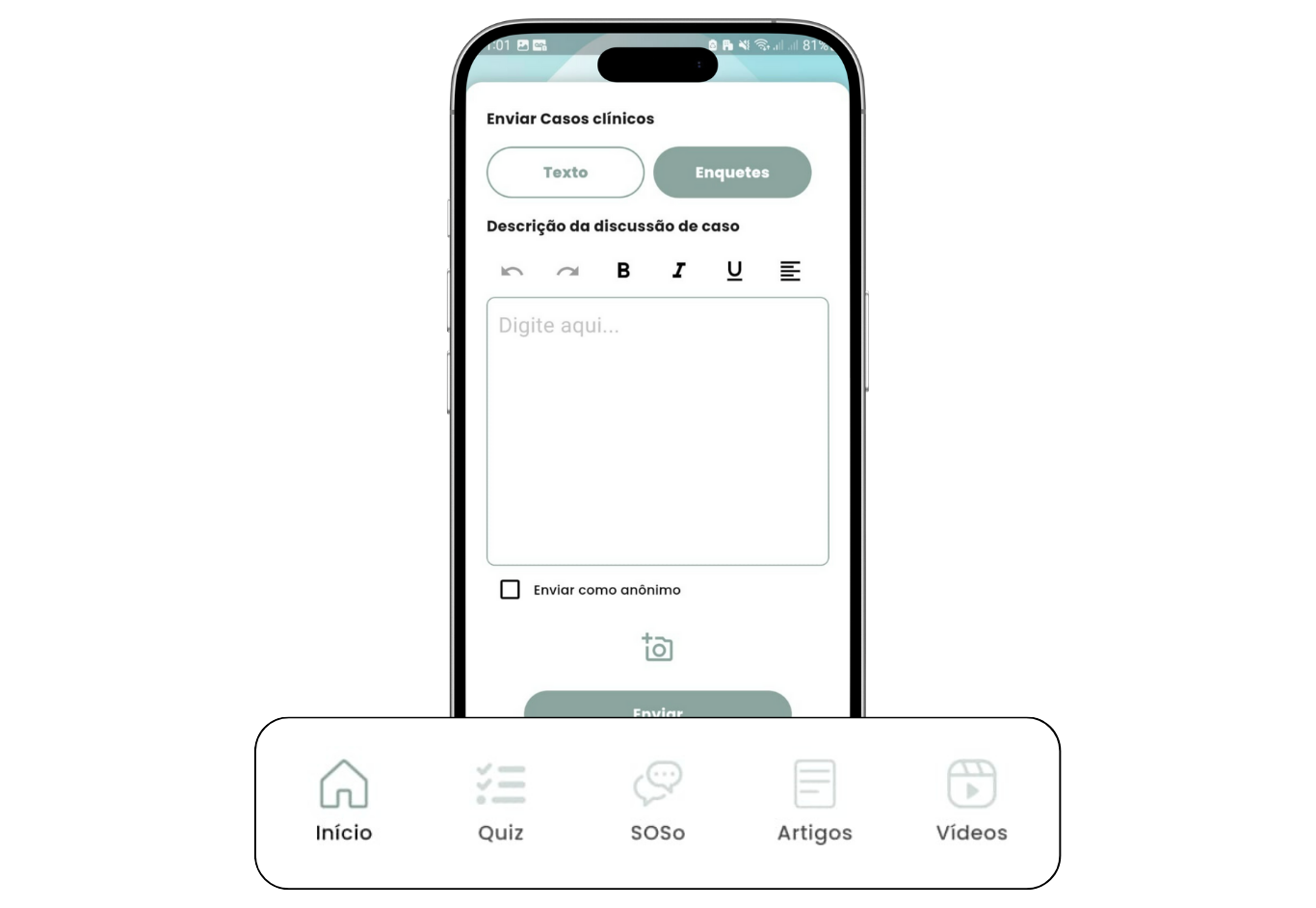 Qual médico nunca teve um caso difícil na prática diária? Dúvidas surgem quase que diariamente e no app fornecemos a solução através de uma comunidade para que os médicos enviem seus casos clínicos, e outros colegas possam opinar, além dos nossos embaixadores experts.