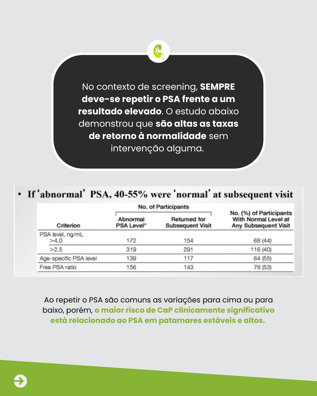 O screening do PSA é de suma importância para o diagnóstico precoce do câncer de próstata. Porém, não deve ser realizado de forma indiscriminada, pois o tratamento para essa neoplasia apresenta efeitos adversos funcionais significativos. Assim, se pudermos minimizar o Overdetection e, sobretudo, o Overtreatment, o benefício desse screening pode ser ainda maior. Leia mais em nosso App Teraquiz (disponível na Apple e Play Stores).