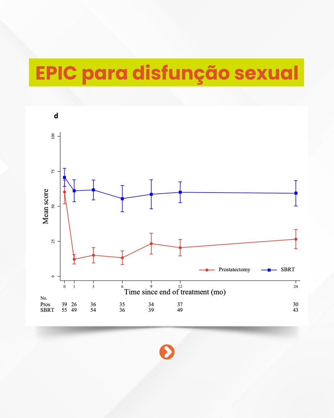 Endpoints primários 📊: número de absorventes urinários por dia para controlar vazamentos 💧 (0 x ≥1 absorventes/dia) e toxicidade gastrointestinal em 2 anos. Endpoints secundários: toxicidade relatada por médicos 🩹, função sexual 🛌 e outros PROs (desfechos relatados pelos pacientes). Leia completo pelo App Teraquiz!